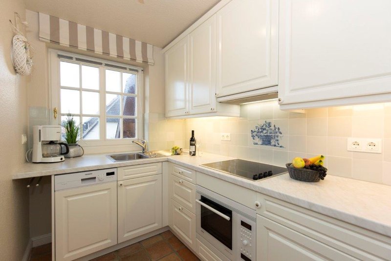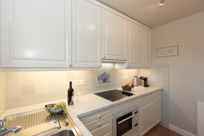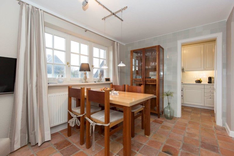 In der separaten, hell eingerichteten Küche fühlt man sich direkt wohl, hier hat alles seinen Platz. Dank hochwertiger Ausstattung kann man leckere Gerichte zaubern und im Anschluss am großen Esstisch im Essbereich die Mahlzeiten mit der ganzen Familie genießen.